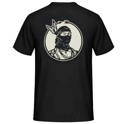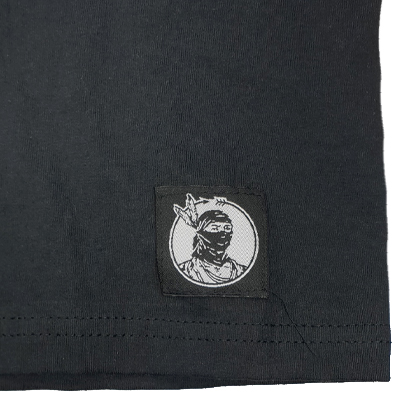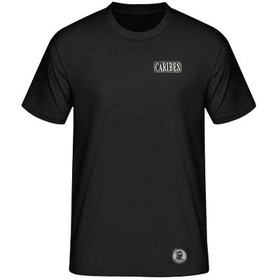 Das Mask T-Shirt von Caribes ist ein schwarzer Pullover mit siebgedruckten Logo-Designs, kleiner Schriftzug auf der Brust und grosses Caribes Tribu Masken-Logo auf dem Rücken.