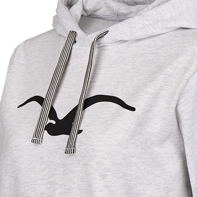 Das Möwe 3 Girl Hoody von Cleptomanicx ist ein superbequemer Kapuzenspulli mit dem klassischen Clepto-Möwen-Print auf der Brust, Rippbündchen, Kapuze mit Tunnelzug und gestreiftem Bändel und kuschlig-weicher Innenseite.