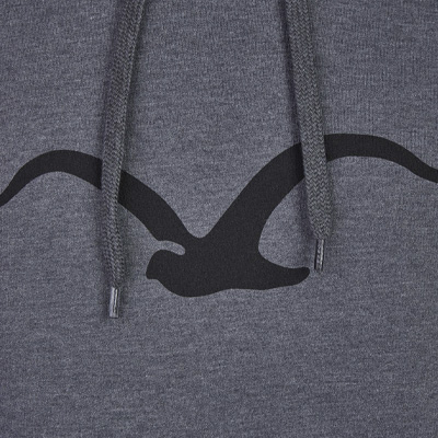 Der Cleptomanicx Möwe Hoody in meliertem Dunkelgrau mit schwarzem Möwen-Logo Print auf der Brust. Der bequeme Kapuzenpullover kommt mit Kängurutasche mit Audio-Schlitz für Kopfhörer und Logoflag in der Seitennaht, doppelt gelegter Kapuze und gerippten Bördchen an Ärmeln und Saum und kuschlig weicher Innenseite.