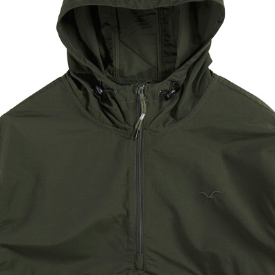 Der Anorak kommt mit verstellbarer Kapuze mit Tunnelzug, Bündchen an den Ärmeln, YKK-Reissverschluss in der vorderen Mitte und Seitennaht, zwei Fronttaschen, Flaglabel in der Seitennaht und Möwenstickerei auf der Brust.