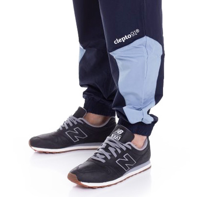 Die Cleptomanicx Track Two Pants sind locker geschnittene dunkelblaue Jogginghosen aus leicht stretchy Nylonstoff, mit hellblauen Colorblocking Elementen, zwei seitlichen Eingrifftaschen und Logo-Printdesign am Bein. Zur passenden Jacke gehts > hier lang!