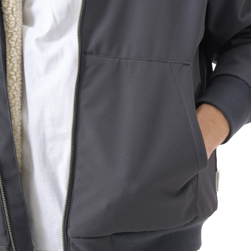 Die Workist Winterjacke von Cleptomanicx ist eine wetterfeste Kapuzenjacke, gefertigt aus recyceltem, Bluesign-zertifiziertem Obermaterial. Sie bietet dank leichtem Padding und weichem Teddy-Futter optimalen Schutz vor Kälte. Ausgestattet ist sie mit einer verstellbaren Kapuze, zwei Seitentaschen mit Knopfverschluss und einer verschliessbaren Innentasche mit Reissverschluss.