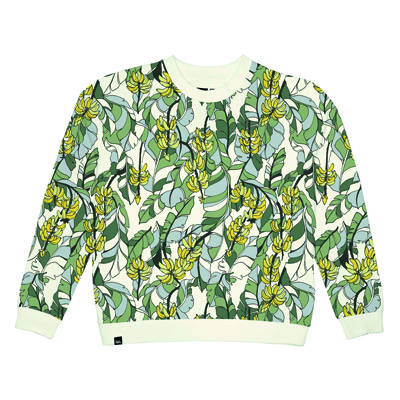 Der Ystad Arrow Banana Leaves Sweater von Dedicated aus Schweden ist ein bequemer Pullover mit coolem Allover-Bananenbaum-Printdesign.