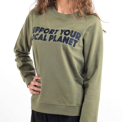Der Ystad Bold Support Sweater von Dedicated aus Schweden ist ein bequemer Pullover, mit einer guten Message als Stickerei auf der Front: Support your local planet.