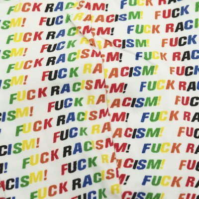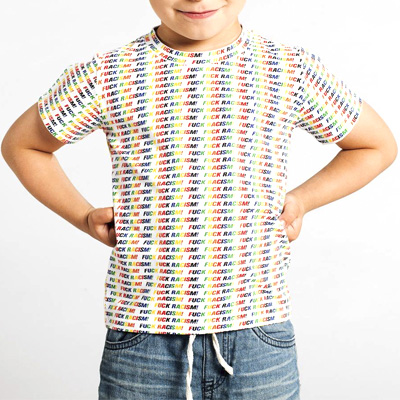 Man kann es nicht oft genug wiederholen: Fuck Racism! Das Hamra Fuck Racism Stripes Kids T-Shirt von Dedicated aus Schweden macht genau das, und wiederholt die wichtige Botschaft unzählige Male farbenfroh auf dem weissen Bio-Baumwoll-T-Shirt.