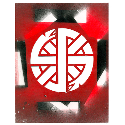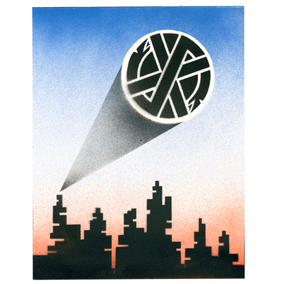 David King (1948-2019) wuchs in der Londoner Nachkriegszeit auf und besuchte dort von 1964 bis 1967 eine Kunstschule. Danach wurde er für ein Jahrzehnt lang Art Director, verliess aber die kommerzielle Kunstwelt, da er sich mehr und mehr mit Musik und Konfrontationsgrafik beschäftigte. 1977 entwarf er das Logo-Design für die Punk-Band Crass, genannt "double-headed snake and cross". In den folgenden Jahren zog er nach New York und wurde mit der Grafik für Clubs wie Danceteria, Peppermint Lounge und für das Museum of Modern Art beauftragt. Um diese Zeit schloss er sich auch der Band Arsenal an. Schliesslich zog Arsenal von New York nach San Francisco um, änderte den Namen in Sleeping Dogs und schliesslich Brain Rust. In den frühen 90er Jahren besuchte King das San Francisco Art Institute und studierte Medien, die er in Grossbritannien noch nicht hatte: Malerei, Skulptur und Fotografie. Seitdem hat David King Kurzfilme gedreht, seine Logodesigns für Bands und Plattenfirmen fortgesetzt, eine Reihe von Fotobüchern veröffentlicht und während seiner gesamten Karriere Schablonen produziert.