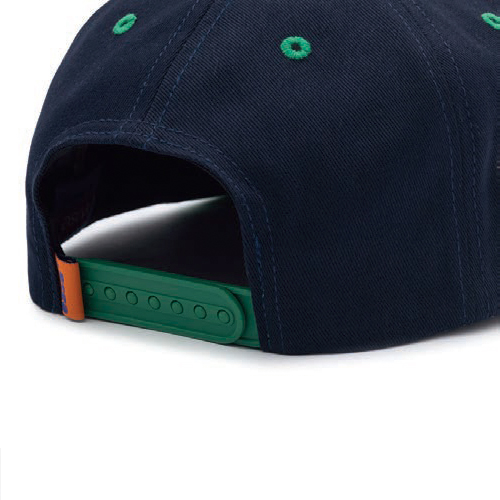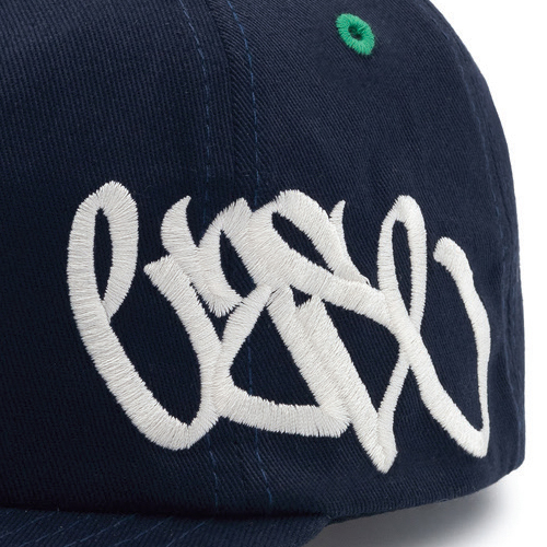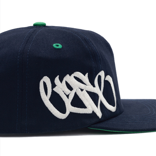 Das Tags Cap von Ease Clothing aus Sao Paulo, Brasilien, kommt mit freshen gestickten Tags auf beiden Seiten, grünem Topknopf, Lüftungslöchern, Schildunterseite und Snapback-Verschluss.