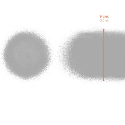 Das ASTRO Fat Cap ergiebt einen sehr breiten Strich, perfekt geeignet zum schnellen und effizienten Ausfüllen grosser Flächen, auch mit Low-Pressure Cans. Strichbreite: ca. 9 cm.