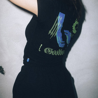 Das Connect T-Shirt von Goodbois aus München, mit kleinem Printdesign auf der Brust und grossem Backprint.