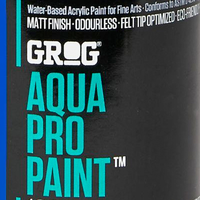 Grog Aqua Pro Paint 100 ist eine hochpigmentierte Acrylfarbe für alle denkbaren Anwendungen. Die witterungsbeständige, dauerhafte, superdeckende Farbe kommt mit tiefmattem Finish, sie eignet sich zum Nachfüllen der Grog APP Marker, kann aber auch mit Pinseln oder Airbrush auf allen denkbaren Oberflächen angewendet werden. Die robuste Kunststoffflasche ist mit 100ml der wasserbasierten Farbe gefüllt.