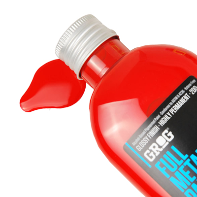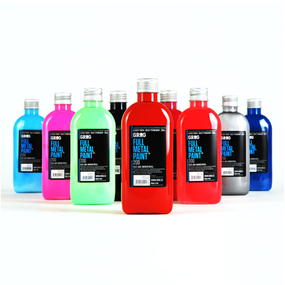 GROG Full Metal Paint FMP - der Zaubertrank zum Nachfüllen eurer Lieblingsmarker! Die Full Metal Paint ist eine für die Squeezer Marker optimierte Lackfarbe die das Maximum an Deckkraft und Farbfluss bietet. Die schnelltrocknende Farbe eignet sich für alle Untergründe, ob Drinnen oder Draussen, und ist hochdeckend auf hellen oder dunklen Flächen. Die äusserst beständige und dauerhafte Farbe hat einen glänzenden Finish. Die Farbtöne lassen sich untereinander mischen, so lässt sich fast jeder gewünschte Farbton kreieren. Erhältlich ist die Full Metal Paint in 19 Farbtönen, darunter drei Neon-Farben sowie Silber- und Goldchrom. Am einfachsten und saubersten geht das Nachfüllen der Marker mit dem Grog Refiller.