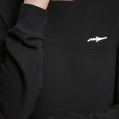 Der Tillia Sweater von Illmatic ist ein entspannter dreiteiliger Crewneck Pullover aus weichem Terrystoff, mit breitem Rippbündchen und kleinem Pfeil-Logo-Print auf der Brust.
