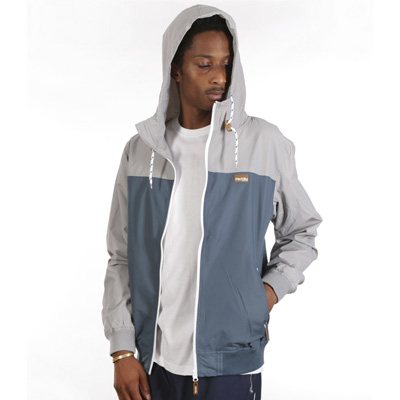 Die Auf Deck Jacke von Iriedaily aus Berlin Kreuzberg ist eine leichte, zweifarbige Übergangsjacke in Grau und Hellblau. Sie ist Wasser- und Windabweisend (2000mm Wassersäule), ausgerüstet mit seitlichen Eingrifftaschen mit Reissverschluss, Innentasche mit Reissverschluss, verstellbarer Kapuze und elastischen Bündchen an Ärmelenden und Saum. Wie alle Produkte von Iriedaily wurde der Windbreaker nach den Kriterien der Fair Wear Foundation und vegan hergestellt.