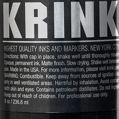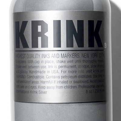 Neuauflage der original 8oz Krink Mop Ink Nachfüllflasche, welche das erste Produkt von Krink NYC war. Jede Glasflasche wird von Hand befüllt und etikettiert. Erhältlich in glänzendem Silberchrom und mattem Schwarz.