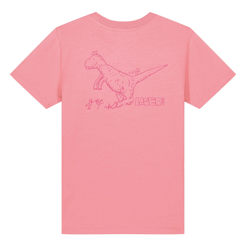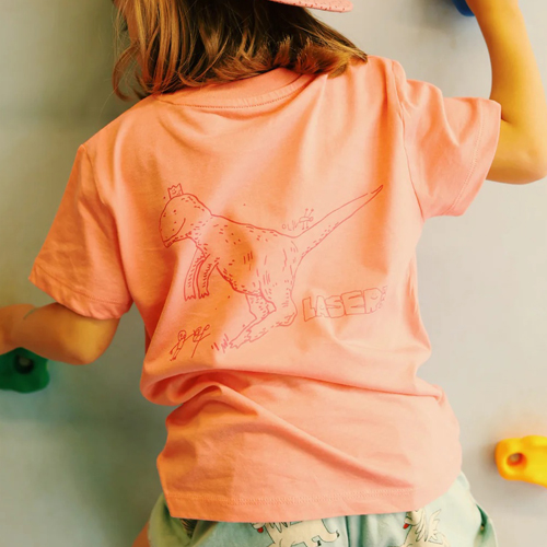 Das Olivia Kids T-Shirt von Laser aus Barcelona kommt mit einem Print auf der Brust und einem Backprint.