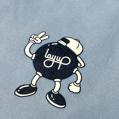Praktischer und stylischer Turnbeutel von Layup mit dem Layup Comic Logo als zweifarbigem Siebdruck.