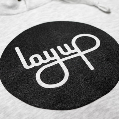 Das Layup Circle Logo Hoody ist ein graumelierter Kapuzenpullover mit weicher Innenseite und schwarzem Siebdruck des Layup Circle-Logos oberhalb der Kängurutasche auf der Vorderseite.