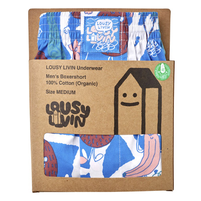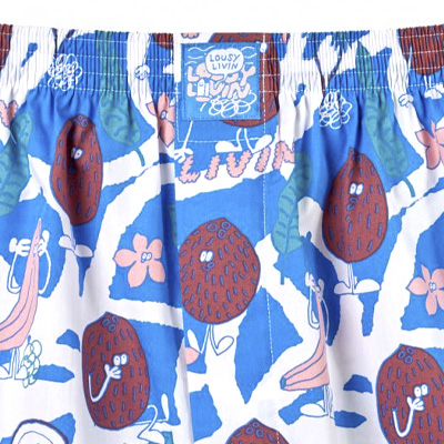Die Coconut Boxershorts von Lousy Livin kommen mit einem lässigen Coconut-Alloverprint. Die Boxershorts sind klassisch mit Eingriff und Knopf sowie bequemem Gummibund und weiterem Beinabschluss und sind aus 100% Bio-Baumwollstoff genäht.