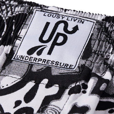 Die Underpressure 3 Boxershorts sind eine Co-Produktion vom Hamburger Graffitishop Under Pressure und dem Hamburger Boxershort-Label Lousy Livin. Die bequemen Shorts sind allover-bedruckt mit einem coolen schwarz-weissen Graffiti-Design - fresh!