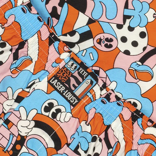 Diese Boxershorts sind eine Kollabo zwischen Lousy Livin aus Hamburg, dem Streetwear-Label Laser aus Barcelona und YEYE WELLER, einem Illustratorenduo aus Münster, Deutschland.