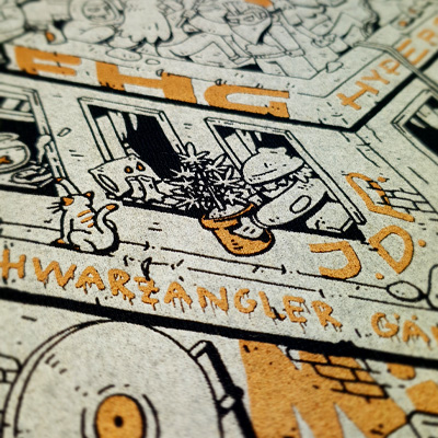 50% Baumwolle, 50% Polyester. Handgedruckt in der Schweiz.