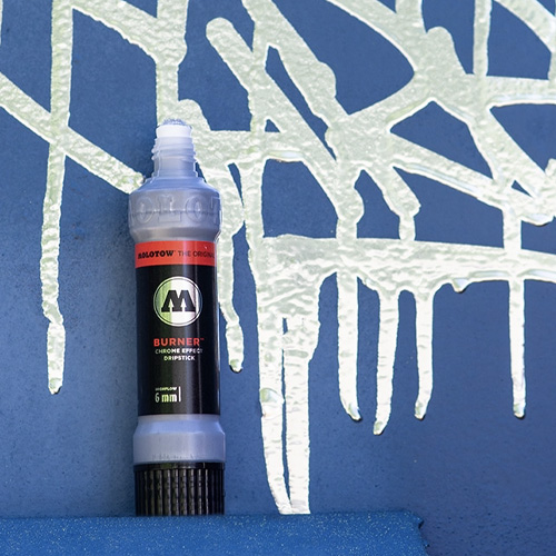 Der DRIPSTICK BURNER Chrom von MOLOTOW ist mit der legendären, hochglänzenden und hochdeckenden Chrom-Tinte auf Alkoholbasis gefüllt. Die speziell optimierte Rezeptur sorgt für einen extra reflektierenden Hochglanzeffekt.