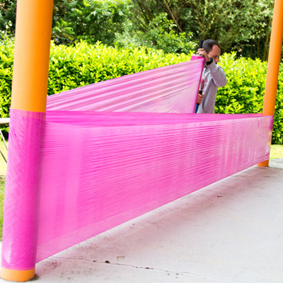 Die transportable Graffiti-Malfläche aus robuster Kunststoff-Stretch-Folie hat eine Breite von 50cm und eine Länge von 300 Metern. Erhältlich in Schwarz, Pink und Transparent.