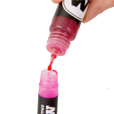Die MOLOTOW GRAFX Aqua Ink Refill 30ml zum leichten Nachfüllen der MOLOTOW GRAFX Aqua Ink Pump Softliner Marker in der praktischen 30ml Refill-Flasche. Die farbintensive Spezialtinte auf Wasserbasis ist problemlos untereinander mischbar, ist wasserlöslich und auswaschbar. Erhältlich in 12 Farbtönen.