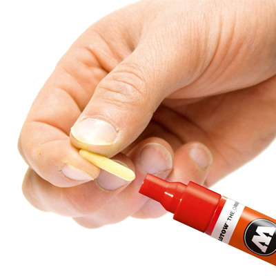 Er eignet sich als Allround-Marker für Zeichnen und Malen, für drinnen wie draussen und auf fast allem: von Papier oder Leinwand bis zu schwierigen Oberflächen wie Holz, Stoff, Beton und selbst Leder.