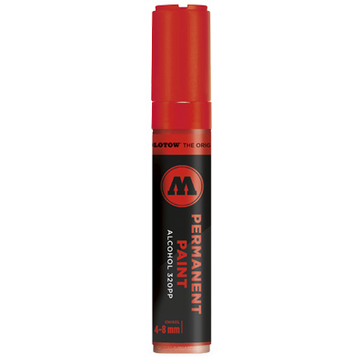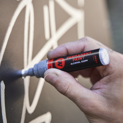 Der Molotow Permanent Paint Marker 320PP mit 4–8 mm Strichstärke ist das ideale Werkzeug für saftigen Farbauftrag auf fast allen glatten und rauen Untergründen. Die permanente Tinte auf Alkoholbasis ist deckend, glänzend und schnelltrocknend.