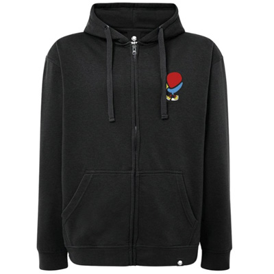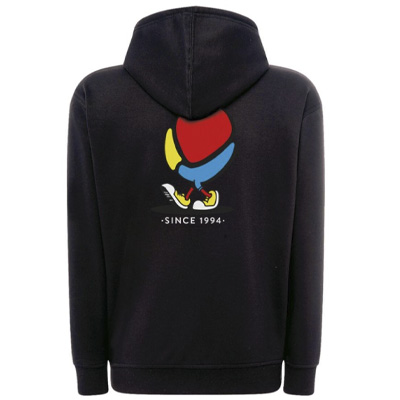 Der MTN Hooded Zipper Walking Logo von Montana Colors ist ein schwarzer Kapuzenpullover mit durchgehendem Reissverschluss und Kängurutasche. Das spazierende Logo gibts gleich zweimal aufgedruckt: einmal klein auf der Brust und einmal gross als Backprint.