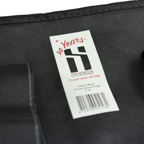 Der 12-Pack 10 Years Canbag von Mr. Serious ist ein praktisches Must-Have Accessoire für Writer, das zum 10-jährigen Jubiläum der Marke entworfen wurde. Wie es der Name schon verrät bietet die sehr stabile Tasche Platz für zwei Boxen mit jeweils 6 Dosen mit etwas Platz nach oben. Sogar die 600ml Cans passen perfekt in den 12 Pack Canbag! Oder auch zwei Sixxer Bier...