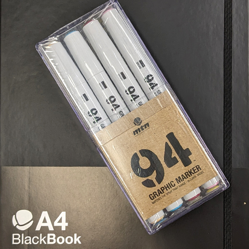 MTN Sketching-Starterpack: mit dem 12er Set der MTN 94 Graphic Twin Marker und dem MTN A4 Blackbook kannst Du gleich mit professionellen Tools loslegen mit Zeichnen!