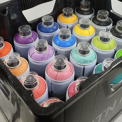 Die MTN BOX ist eine stapelbare Kunststoffbox, mit der Spraydosen praktisch transportiert und ordentlich aufbewahrt werden können, ob zu Hause, im Atelier oder im Kofferraum. Zudem kann sie beim Malen zum draufstehen benutzt werden, so kommt man gut 40cm höher rauf!