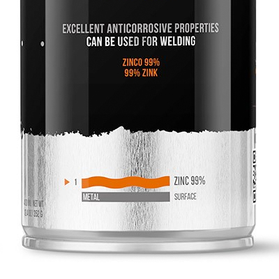 Er eignet sich besonders als Korrosionsschutz von metallischen Oberflächen wie: Metallkonstruktionen, Zäune, Schweissverbindungen, Industriefahrzeugen und zur Reparatur von verzinkten Teilen.