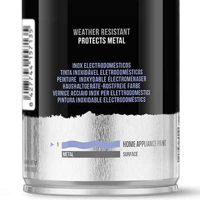 Die MTN PRO Haushaltsgeräte-Lackspray ist ein lösungsmittelhaltiger Acryl-Farbspray, erhältlich in Haushältsgeräte-Weiss und Edelstahl-Silber, gemacht zur Ausbesserung von Haushaltsgeräten und -installationen. Es handelt sich um eine antioxidative Sprühbeschichtung, die mit synthetischem Nitroharz und metallischen Edelstahlpigmenten formuliert ist.