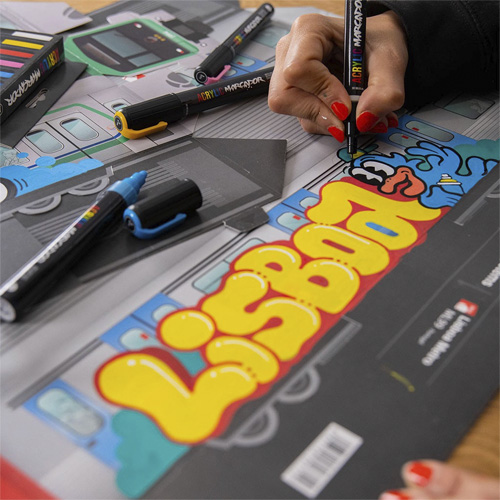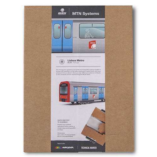 Die MTN Systems Mini-Trains zum Bemalen. Die originalgetreuen Züge sind auf Faltkarton gedruckt und lassen sich leicht zusammenbauen, mit allen Lackmarkern kannst du deinen Style drauf malen, z.B. mit den MTN Acrylic Marcador Marker. Hier gibts einen Wagen der Metro von Lissabon.