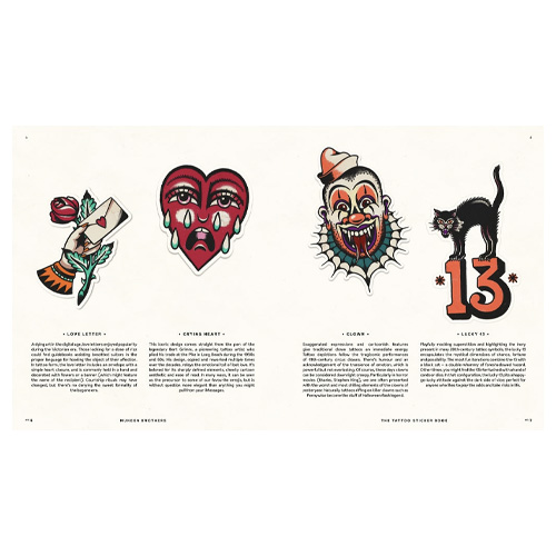 Dieses Buch enthält 150 wunderschön illustrierte Sticker, die die Kunst des Tätowierens feiern. Die Designs reichen von traditionell bis modern und decken alle wichtigen Stile und Motive ab. Entdecke Herzen, Matrosen, Pin-ups, Totenköpfe, Rosen, Schwalben sowie neue und überraschende Kompositionen, alle im unverkennbaren Stil der Munden Brothers. Ergänzt durch faszinierende Texte von Nick Schonberger über die Ursprünge und die Bedeutung bekannter Symbole und Stile.