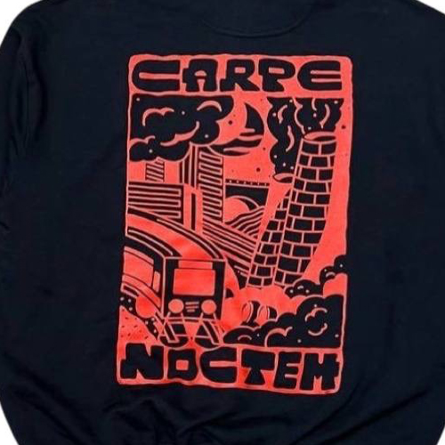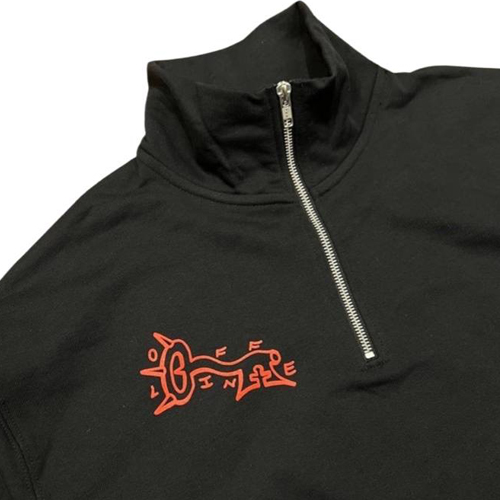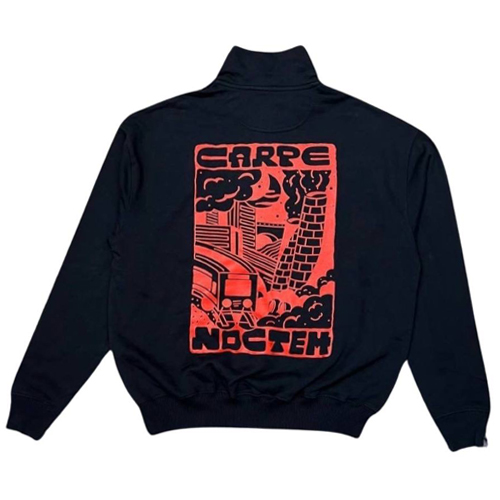 Der Carpe Noctem Half Zip Sweater von Offline Clothing aus Bern kommt mit kleinem Print auf der Brust und grossem Print auf dem Rücken.