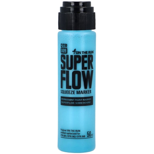 Der OTR 009 Super Flow Squeeze Marker kommt mit robustem rundem18mm Nylon-Tip mit Farbfluss-Ventil, weichem Body und ist befüllt mit 50ml der saftigen, deckenden Permanent Paint Lackfarbe, die gut kratz- und wetterfest ist und leuchtend glänzenden Finish hat.