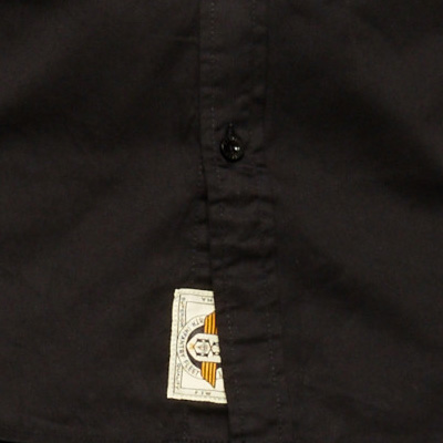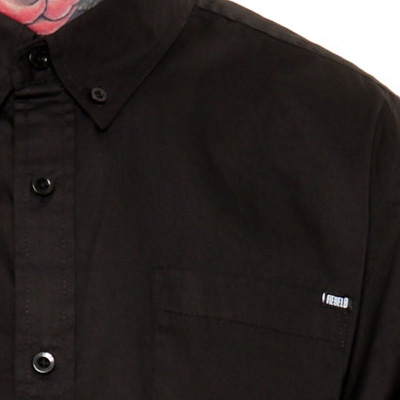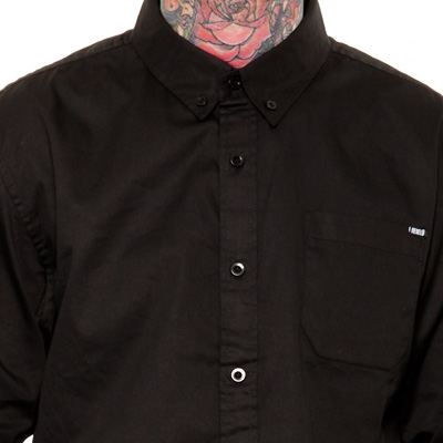 Das Junction Hemd von REBEL8 ist ein langärmliges Button-Up Hemd aus schwarzem Baumwollstoff, mit gewobenen Logolabels über dem Saum und an der Brusttasche.