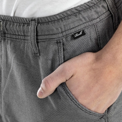 Die Reflex Easy ST vom deutschen Label Reell sind bequeme Chinohosen mit entspanntem, konischem Schnitt und elastischem Kordelzugbund. Der angenehme Baumwollstoff kommt mit feinem Webmuster und ist leicht mit Elasthan versetzt, was die Hosen leicht stretchy macht, was beim Skaten oder anderen sportlichen Betätigungen sehr praktisch ist.