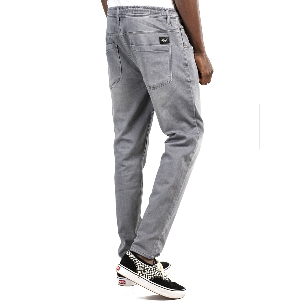 Die Jogger Jeans von Reell kombinieren den Komfort einer Joggerhose mit dem Look einer 5-Pocket Denim Jeans. Die Jogger Jeans kommen mit elastischem Kordelzug am Bund, in entspanntem, konischem Schnitt im klassischen Five-Pockets Jeans Stil. Der angenehme, leichte Denimststoff ist für mehr Bewegungsfreiheit leicht mit Elastan versetzt.
