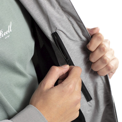 Die schlichte graumelierte Hooded Rib Allwetterjacke von Reell ist aus atmungsaktivem, wasserdichtem Stoff hergestellt, abgerundet mit einem YKK AquaGuard Reissverschluss, versiegelten Nähten und Mesh-Futter. Der anpassbare Halsausschnitt und der gerippte Hüftbund liefern eine zeitlose Jacke mit einem lockeren Flair, mit der du jedem Huddelwetter standhältst.