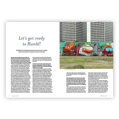 Street and more - das SAM Magazin kommt auch in der 13. Ausgabe mit einer tollen Mischung aus aus Graffiti, Street Art und Illustrationen. Mit dabei im Heft sind diesmal unter anderm: Ready2Rumbl, Mr. June, Mambo und Dave the Chimp!