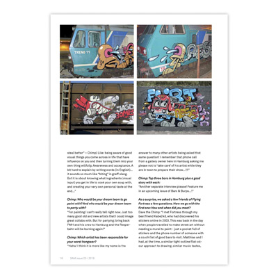 Das Street and more Magazin ist mittlerweile bei Ausgabe Nr. 20 angekommen und würdigt das Jubiläum unter anderem mit folgenen Specials: Flying Förtress, Nychos, Ermsy, Meeting of Styles Manila und Pow!Wow! Rotterdam sind genauso an Board wie Ozon, der sich auf deutschen und belgischen Zügen auslebt. Wir gratulieren und freuen uns schon auf die nächsten 20 Ausgaben!