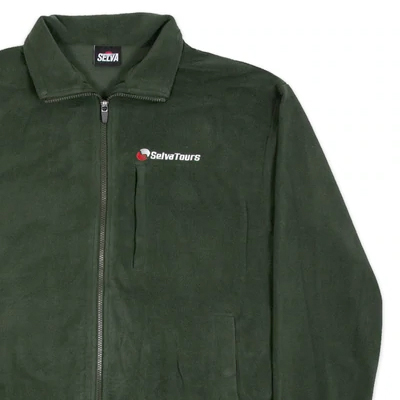 Die Selva Tours Fleece Jacket von Selva ist aus grünem Fleece mit direkt eingesticktem Design und Reissverschlusstasche auf der Brust. Rippkragen und sauberer Abschluss an Saum und Bündchen.