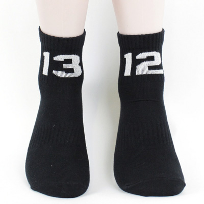 Die 1312 Socken von Sixblox sind qualitativ hochwertige, schwarze Viertel-Socken mit weissen, Jaquard gewebten Zahlenkombinationen "13" und "12".