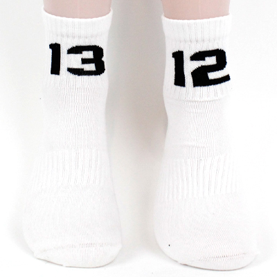 Die 1312 Socken von Sixblox sind qualitativ hochwertige, weise Viertel-Socken mit schwarzen, Jaquard gewebten Zahlenkombinationen "13" und "12".