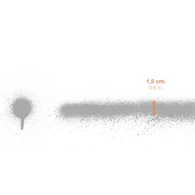 Das rote Needle Cap ist ein spezieller Aufsatz, der einen dünnen, harten Farbstrahl liefert. Das Needle Cap eignet sich für eine Vielzahl von Effekten und fürs experimentelle Arbeiten. Beim nahen, schnellen Ziehen entsteht eine dünne harte Linie. Bei der Anwendung aus grösserer Entfernung entsteht ein ausfransender "dirty" Strich. Strichbreite von 1,5 - 3 cm.